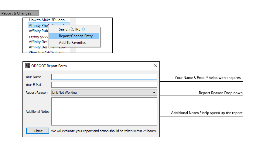Submit Easily submit content to ODRoot