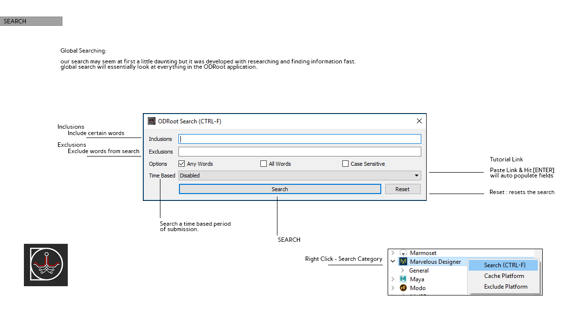 Search Global Search, search for anything in the ODRoot database.
