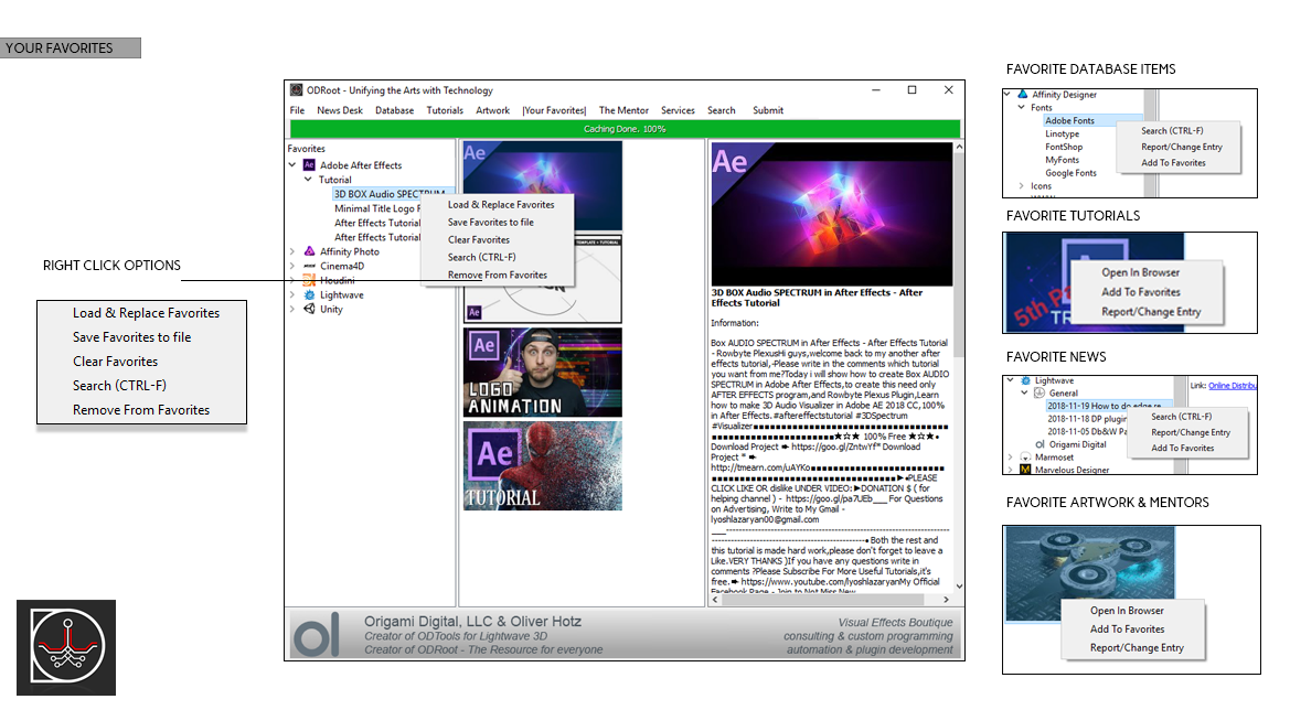 Create, Save and Load your own library with favorites. Support fellow artists, software developers and peers.Thank you for visiting the documentation for ODRoot v3.x